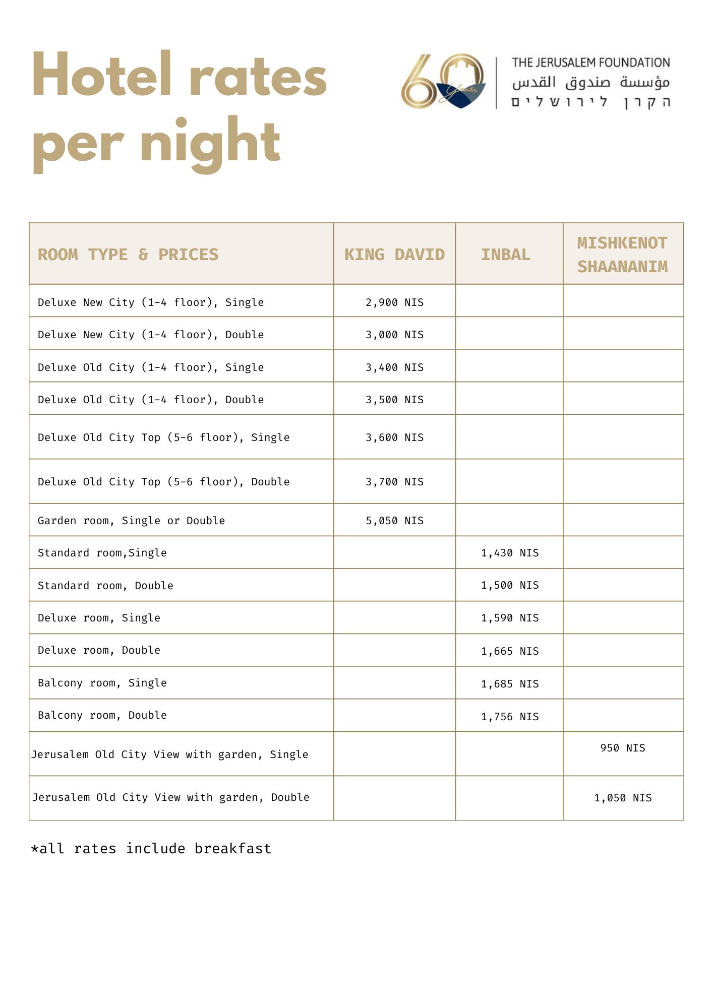 The Jerusalem Foundation will hold a special 60th Anniversary International Event from May 4-7, 2026. We will come together, board members, donors, friends of Jerusalem, to celebrate 60 years of shaping the city of Jerusalem.